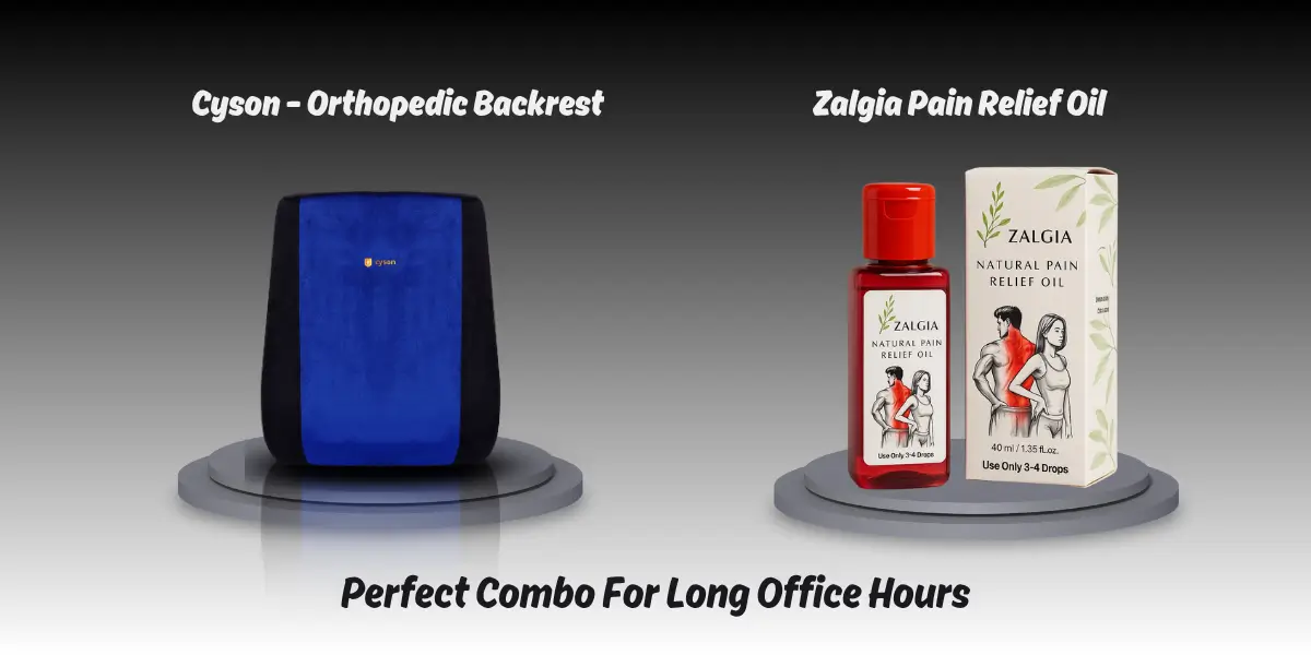 People often turn to pain relievers or heating pads as solutions; these only provide temporary relief. The best way to deal with the problem is by addressing it at its source — posture correction and muscle relaxation. This is what Zalgia oil and a backrest by Cyson.in can offer when used together.